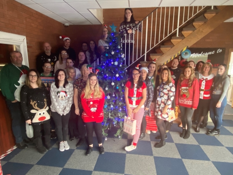 All the office staff entering into the spirit with some interesting choices of festive knitwear, Sam (top right) was beaming having just won the guess the chocolate competition which raised another £50.00 towards our chosen Charity The Cystic Fibrosis Trust.